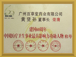 董事長(zhǎng)黃賢孫 建國(guó)60周年中國(guó)醫(yī)療衛(wèi)生事業(yè)最具影響力功勛人物