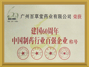 建國(guó)60周年中國(guó)制藥行業(yè)百?gòu)?qiáng)企業(yè)